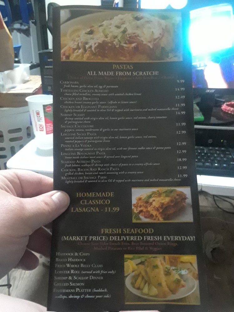 The menu extends beyond pizzas, featuring a variety of wraps, including the savory Chicken Parm and the light Seafood Salad. Each wrap, priced at $10.95, promises fresh ingredients wrapped in warmth and flavor. For those craving heartier options, the diverse chicken dinners—like Boneless Buffalo and Teriyaki Chicken—come with sides and veggies to elevate your meal.